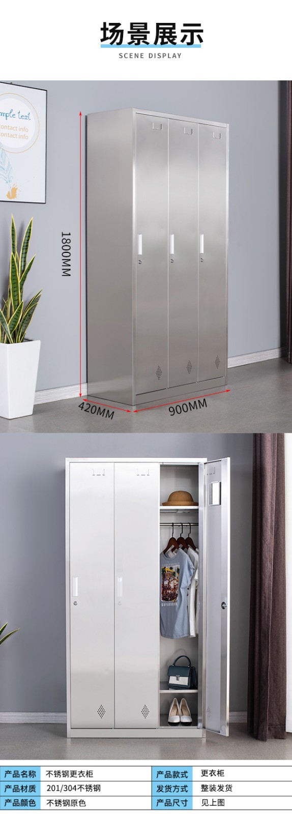 不銹鋼更 衣柜3門(mén)